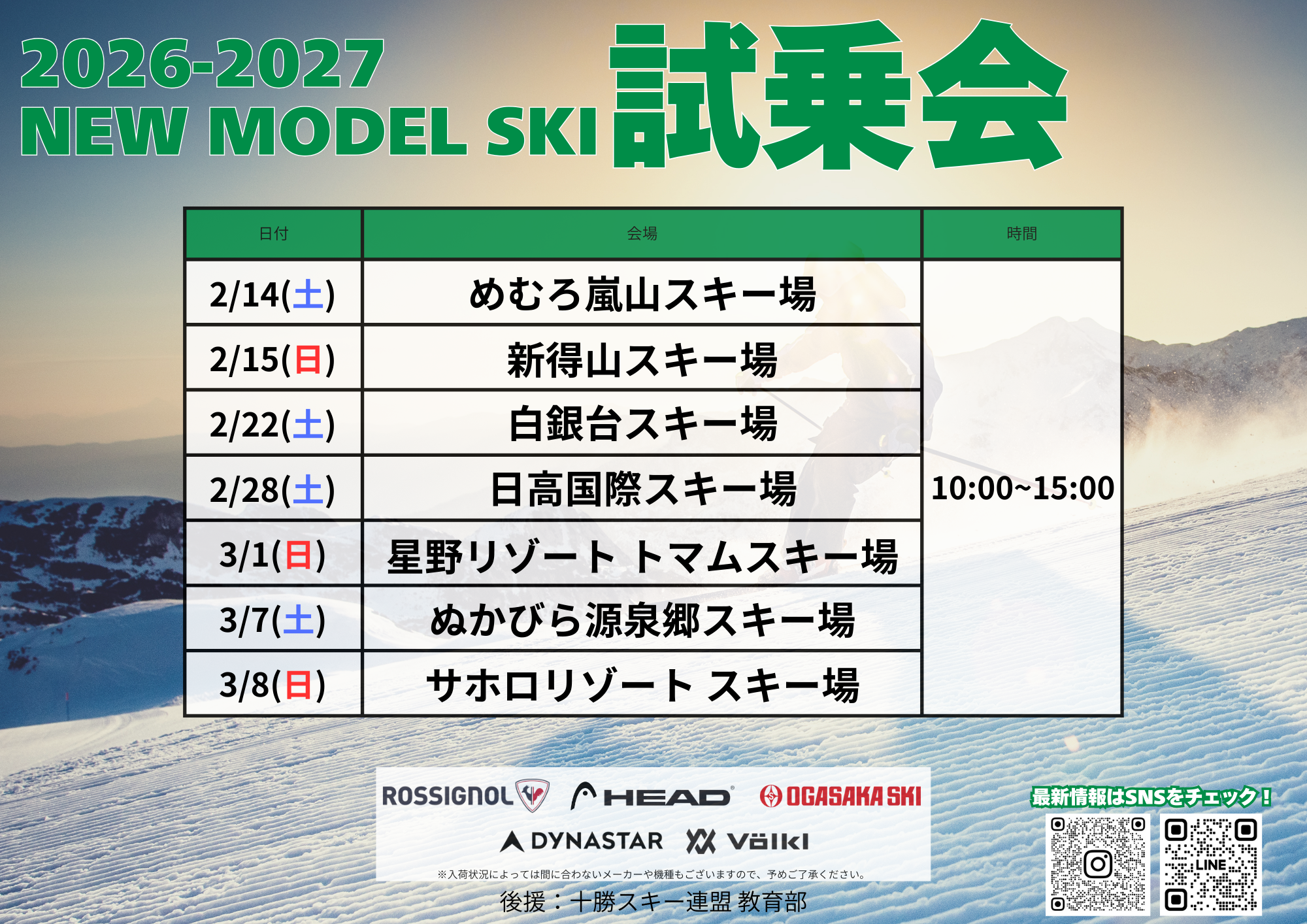 十勝管内のスキー場を中心に巡回開催するスキー試乗会です。